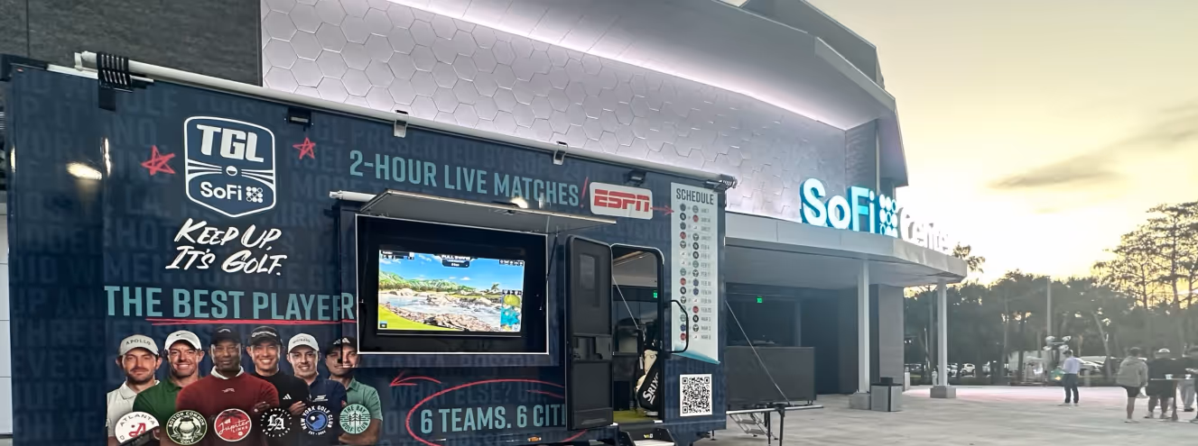 Notably, we will have two Boxes parked outside of SoFi Center for every TGL match this season, one in partnership with the league and the other branded by a long-standing partner, Genesis. If you plan to be in Palm Beach Gardens, come say hi and try our simulator (with prizes on the line!) before the action begins. And if you can’t make it, tune into ESPN on Tuesday nights to catch TGL’s debut season – and to try to spot a Dryvebox on TV!